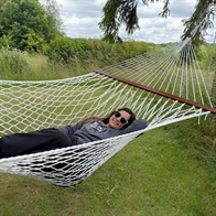 Black hammock with 118 cm wooden sticks. The fabric is made of cotton.