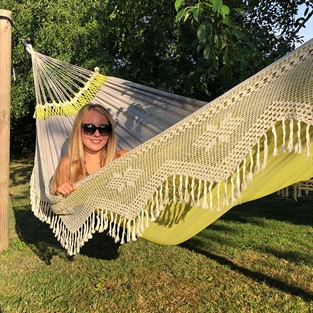 Fabric hammock in Fashion real green color. Lime green and light green. 100% soft cotton with exclusive decoration.