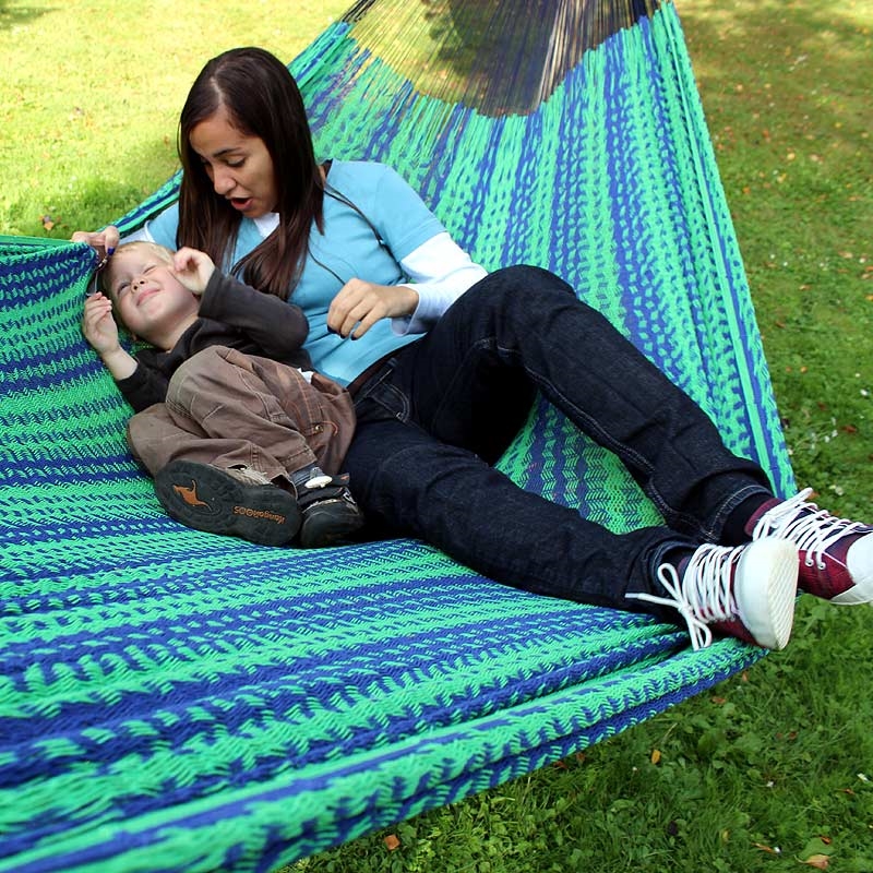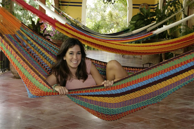 Bring the vacation home! A luxurious hammock handmade by Mexican craftsmen offers a comfortable, fun, and cozy space for everyone in the family. Relax surrounded by comfortablecotton thread and supported by a sturdy nylon structure. Hammocks have proven to enhance relaxation, enjoyment, and well-being, and this will soon become your family’s favorite place in the home.