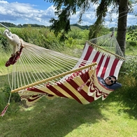 The model NICA Deluxe Extra large hammock no. 26 is beautiful and decorative, an enjoyment that comes in a class of its own. An exceptional handicraft, great to lie in and beautiful to look at!