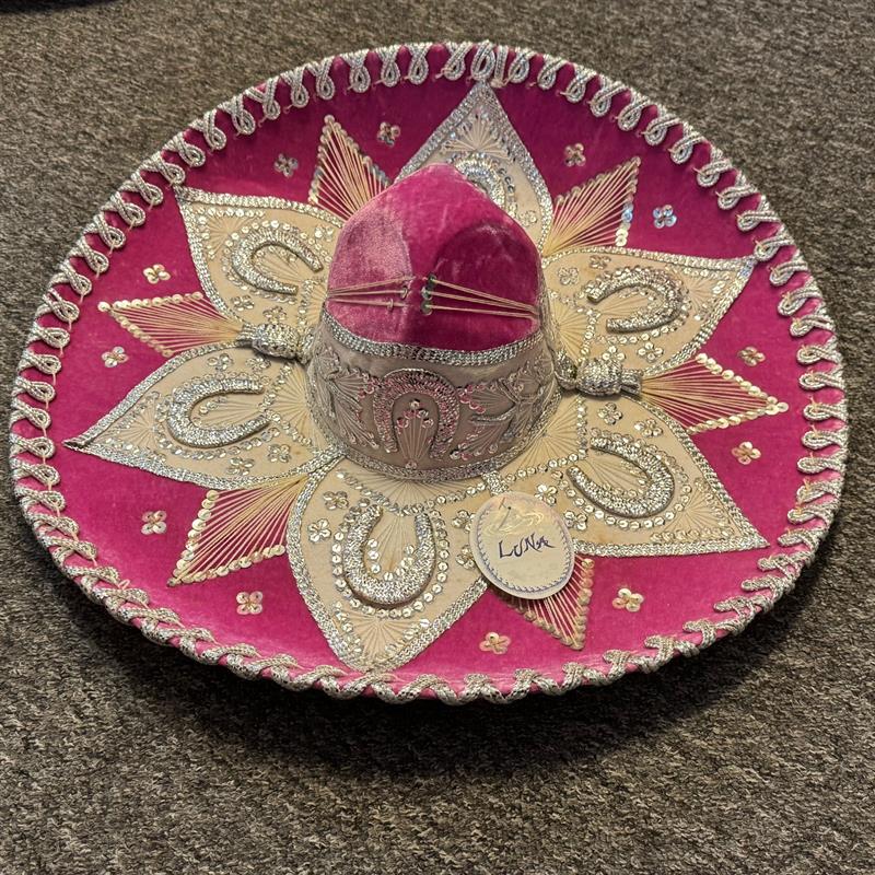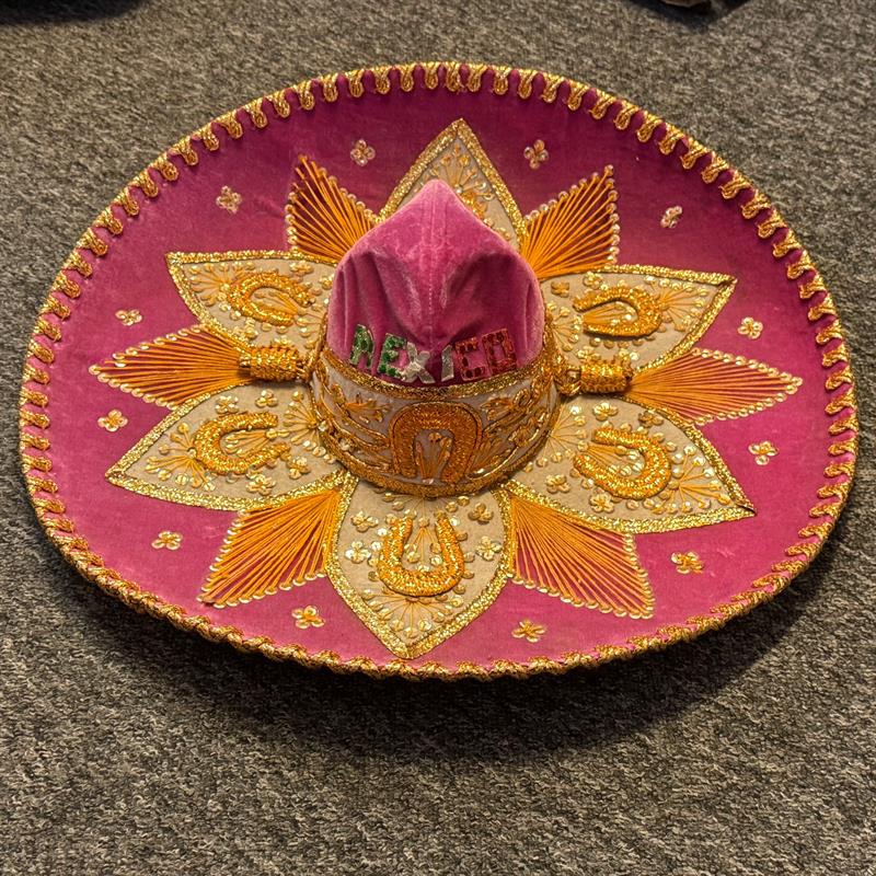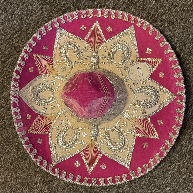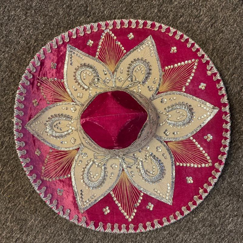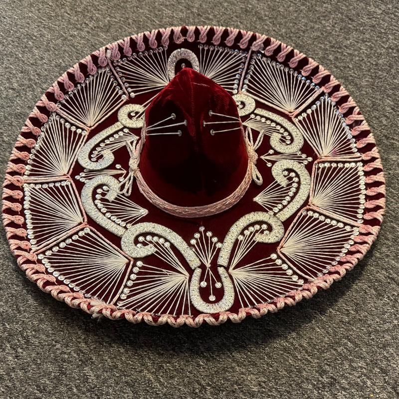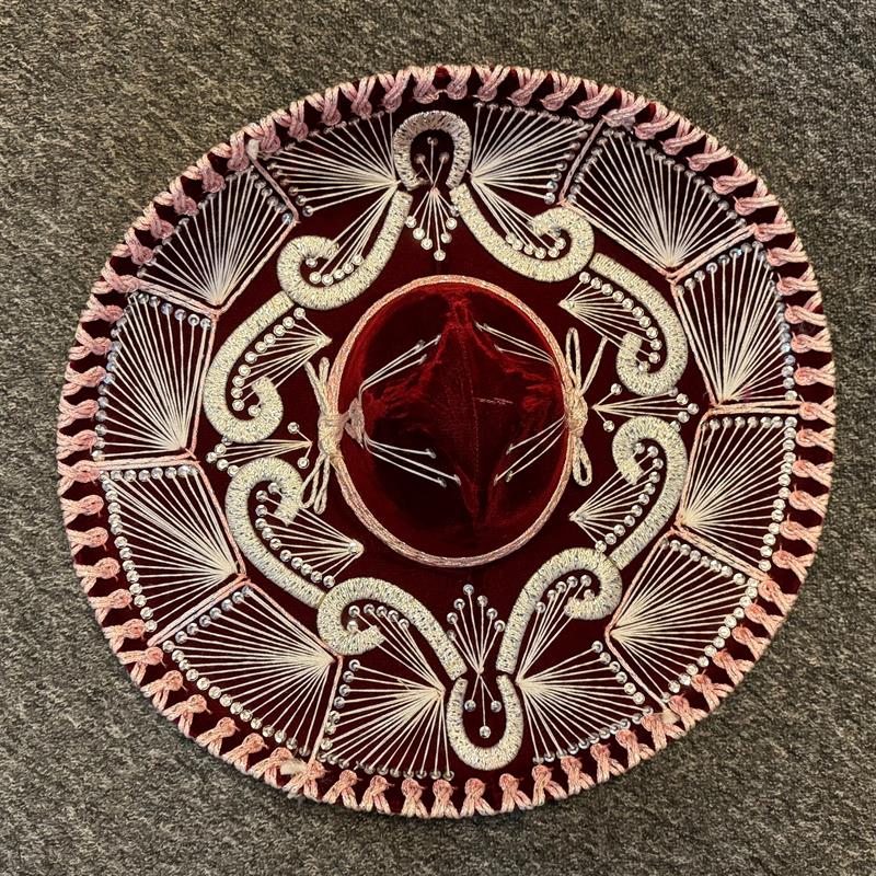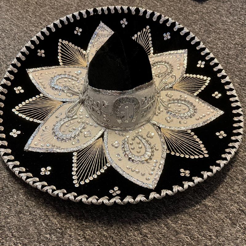 Charro Sombrero: Gold and silver threads create patterns on the hat. Beautiful and special decoration for the wall.